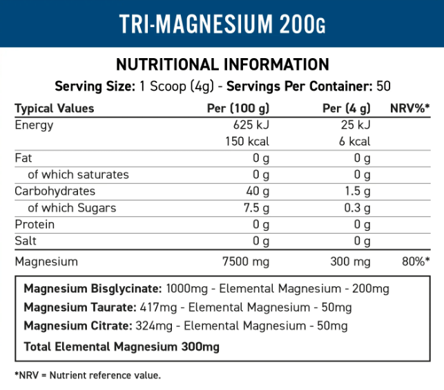 Το Applied Nutrition Tri-magnesium Powder είναι ένα συμπλήρωμα υψηλής ποιότητας σχεδιασμένο να παρέχει ένα ολοκληρωμένο και εξαιρετικά βιοδιαθέσιμο μείγμα μαγνησίου. Διαθέτοντας τρεις μορφές μαγνησίου: διγλυκινικό μαγνήσιο, κιτρικό μαγνήσιο και ταυρικό μαγνήσιο, αυτή η σκόνη εξασφαλίζει βέλτιστη απορρόφηση και αποτελεσματικότητα.