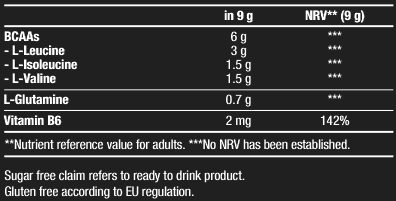 Η γεύση BCAA μη βιοσυσσωρεύσιμων αμινοξέων του BioTechUSA περιέχει αναλογία λευκίνης, ισολευκίνης και βαλίνης 2: 1: 1 που ενισχύουν σημαντικά την επίδραση του άλλου στην οικοδόμηση των μυών και ενεργοποιούν και έχουν φυσική, ειδική αναλογία στους μυς. Προσθέσαμε επίσης τη βιταμίνη Β6 στο προϊόν, το οποίο συμβάλλει στον φυσιολογικό μεταβολισμό των πρωτεϊνών και του γλυκογόνου, καθώς και στη μείωση της κούρασης και της κόπωσης.