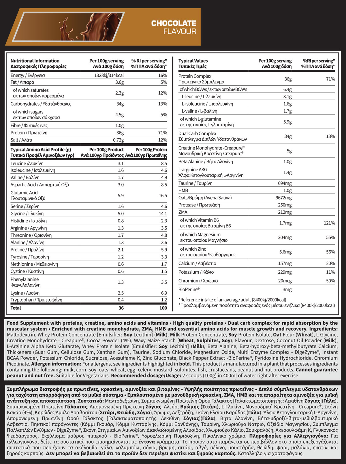 Η Complete Growth συνδυάζει την ιδανική αναλογία πρωτεΐνης και υδατανθράκων με κορυφαία εργοεργικά συστατικά, ώστε να μεγιστοποιεί την απόδοση και τα αποτελέσματά σου. Περιλαμβάνει την καλύτερης ποιότητας κρεατίνη Creapure®, το συνδυασμό ZMA, HMB, Βήτα-Αλανίνης, καθώς και ειδικά πεπτικά ένζυμα για γρήγορη και πλήρη απορρόφηση.