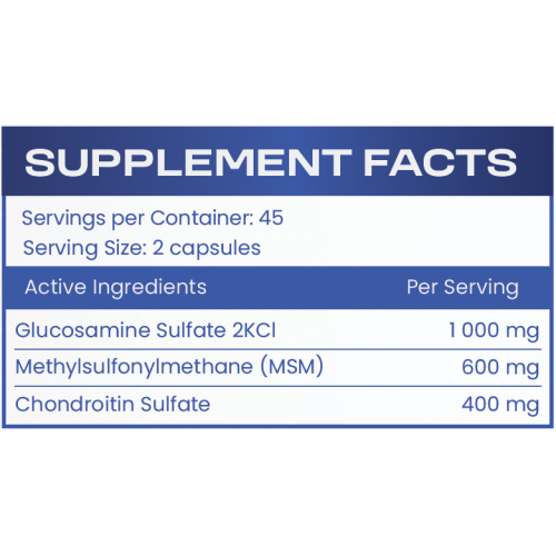 Έρευνες δείχνουν ότι η συμπλήρωση με συνδυασμό χονδροϊτίνης, γλυκοζαμίνης και μεθυλοσουλφονυλομεθανίου (MSM) είναι αποτελεσματική για την προώθηση της υγιούς λειτουργίας των αρθρώσεων και της ακεραιότητας των χόνδρων, καθώς και για τη μείωση της φλεγμονής και του οξειδωτικού στρες στις αρθρώσεις.3,4